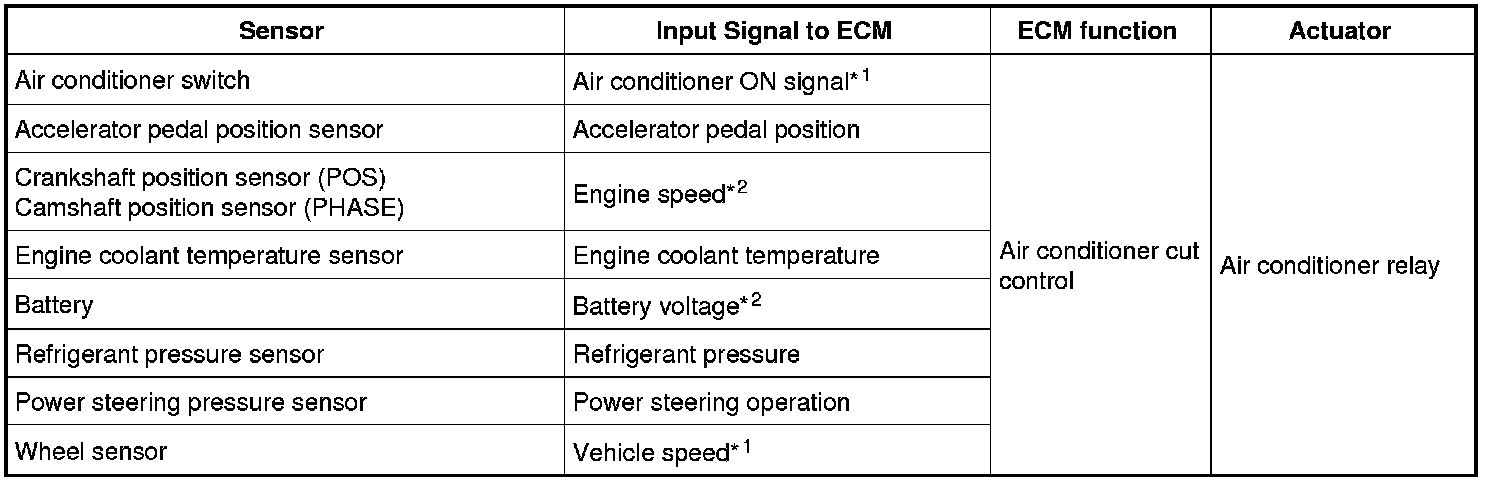 Air Conditioning Cut Control: Input/Output Signal Chart