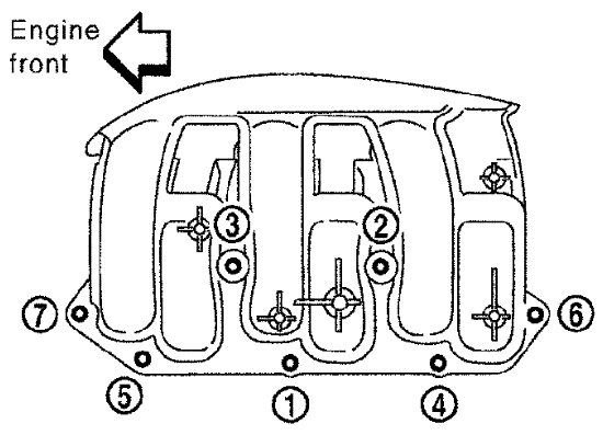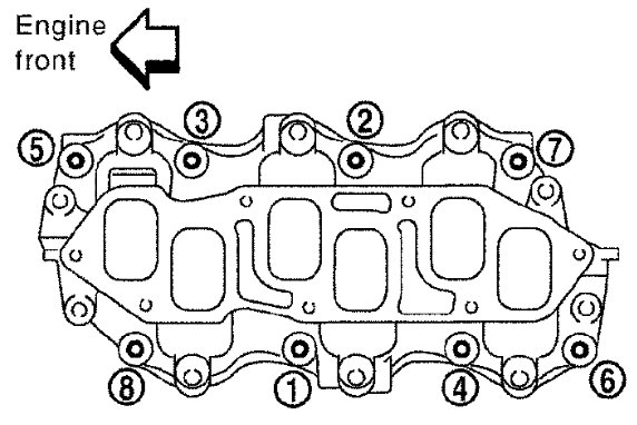- If stud bolts were removed from intake manifold, install them and tighten to the specified torque.