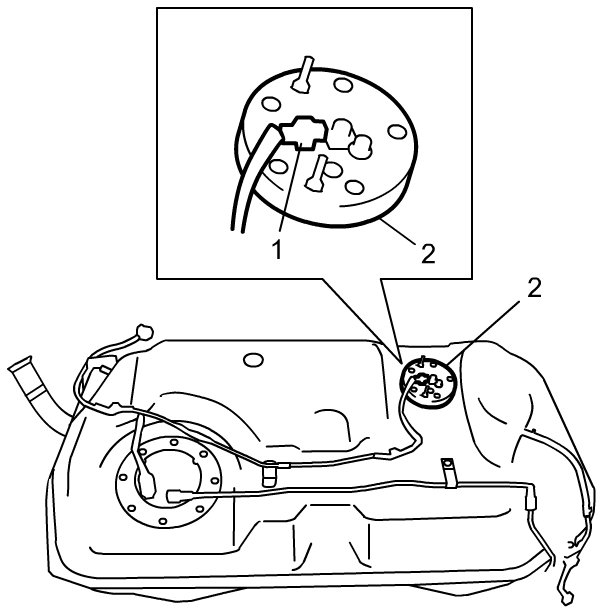 To prevent failure of the fuel level sensor, be careful not to touch the resistor plate (1) or deforming the arm (2) when performing the service operations described below.