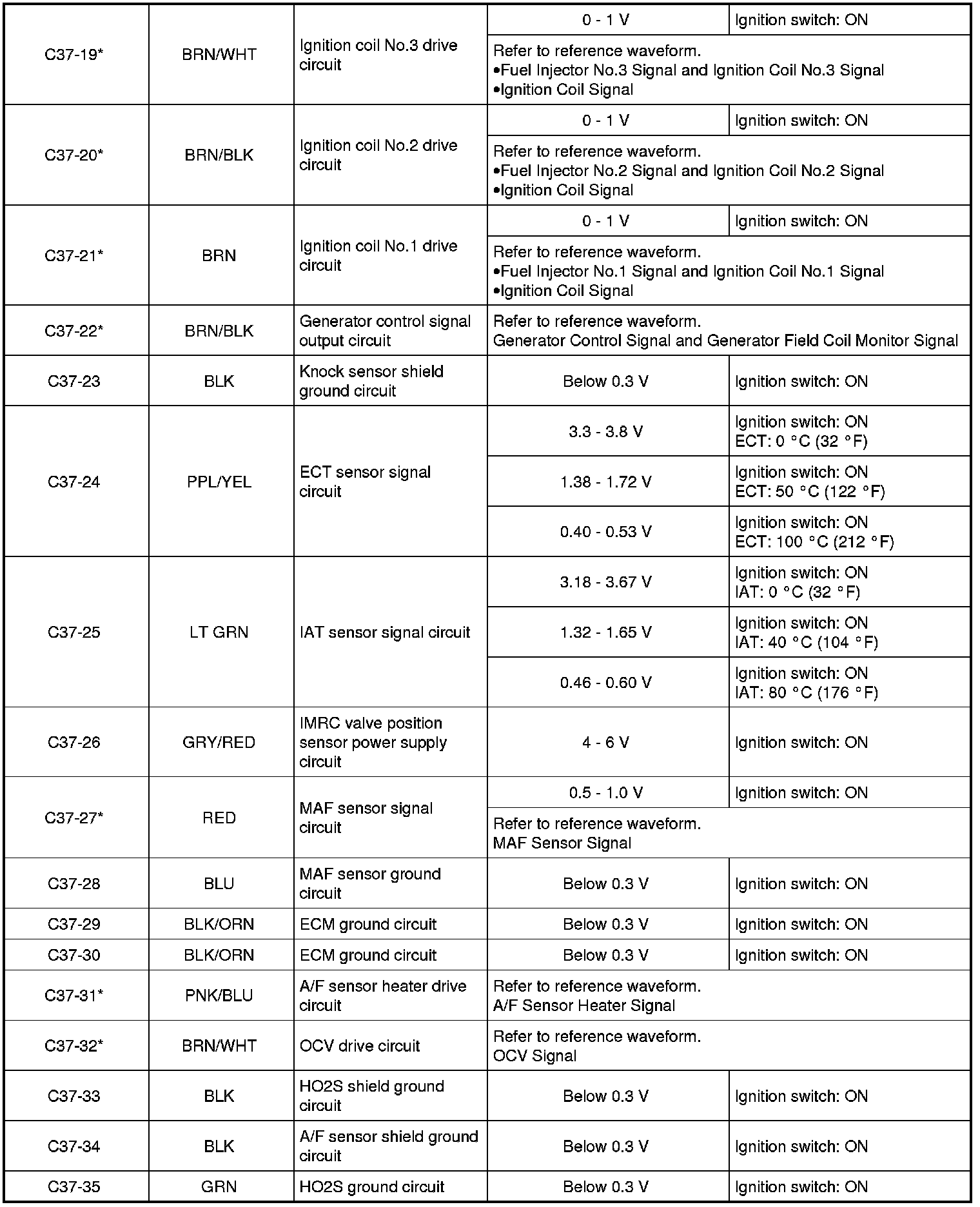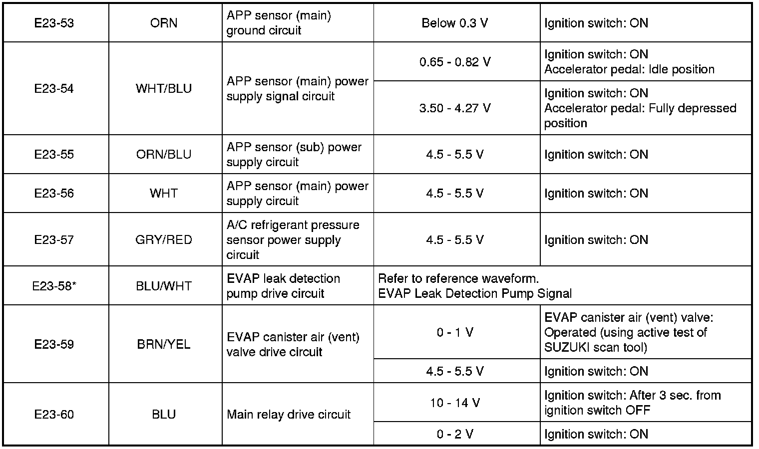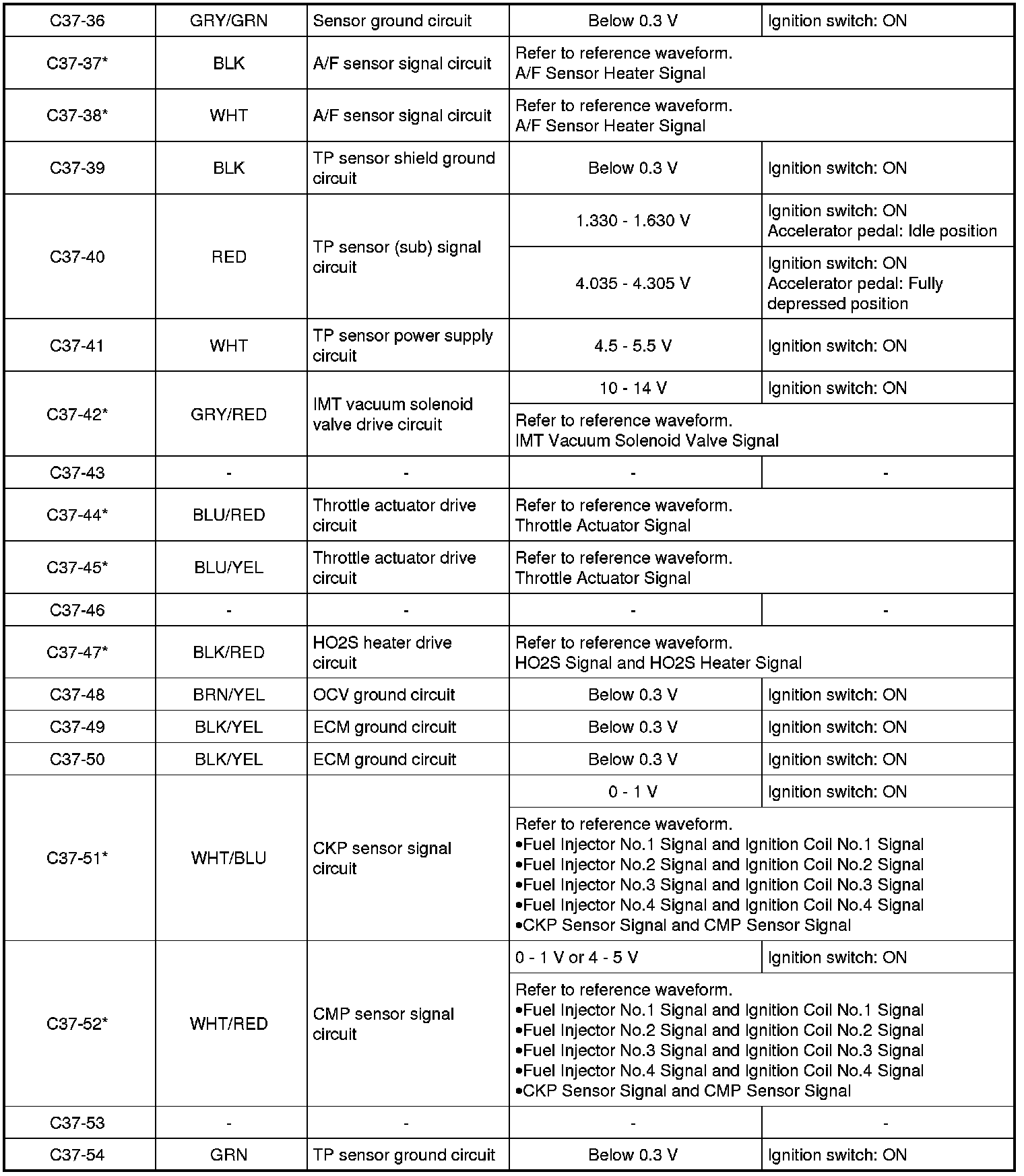 Home >> Suzuki >> 2012 >> Grand Vitara 4WD L4-2.4L >> Repair and Diagnosis >> Powertrain Management >> Computers and Control Systems >> Relays and Modules - Computers and Control Systems >> Engine Control Module >> Testing and Inspection >> Pinout Values and Diagnostic Parameters >> Part 1