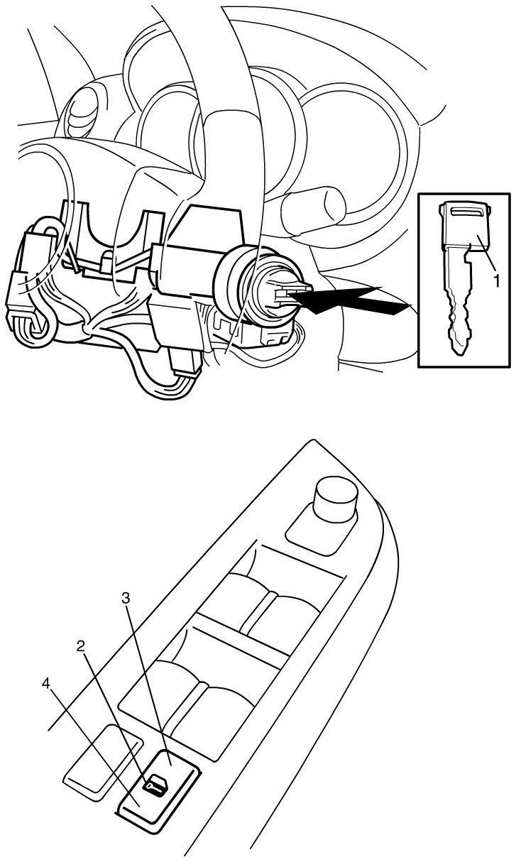 a) First push manual door lock switch (2) toward lock side (3) and then push it toward unlock side (4).