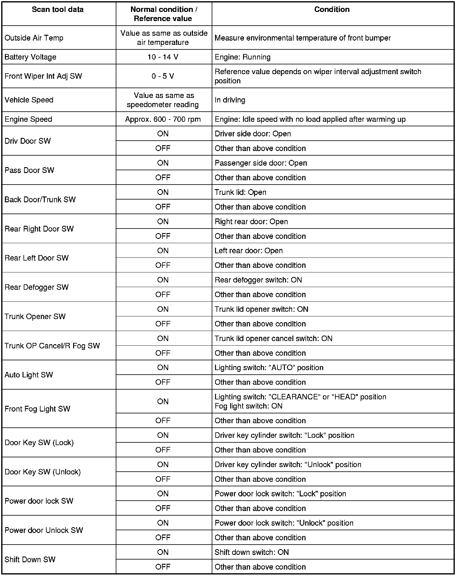 - Refer to Scan Tool Testing and Procedures Scan Tool Data