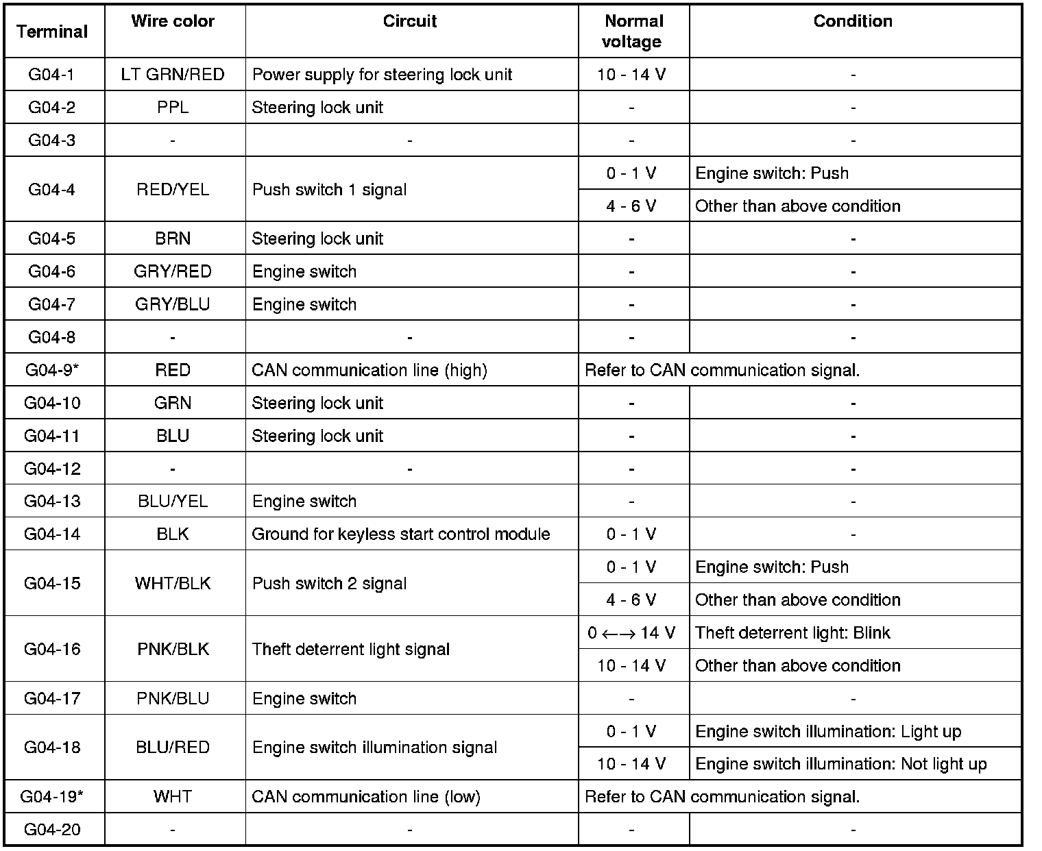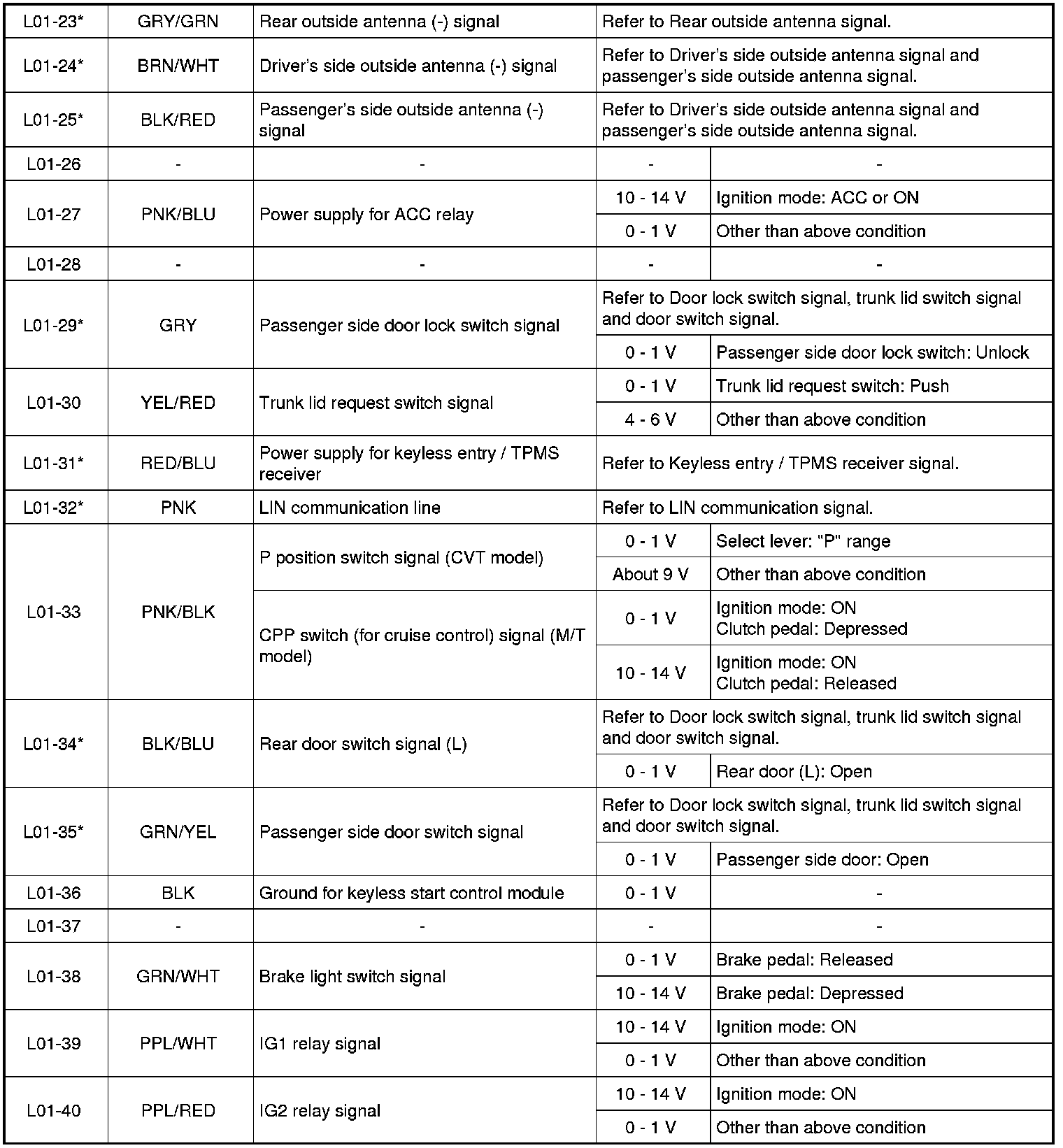 - Voltage of terminal with asterisk (*) cannot be measured by voltmeter because it is pulse signal. Check it with oscilloscope if necessary.