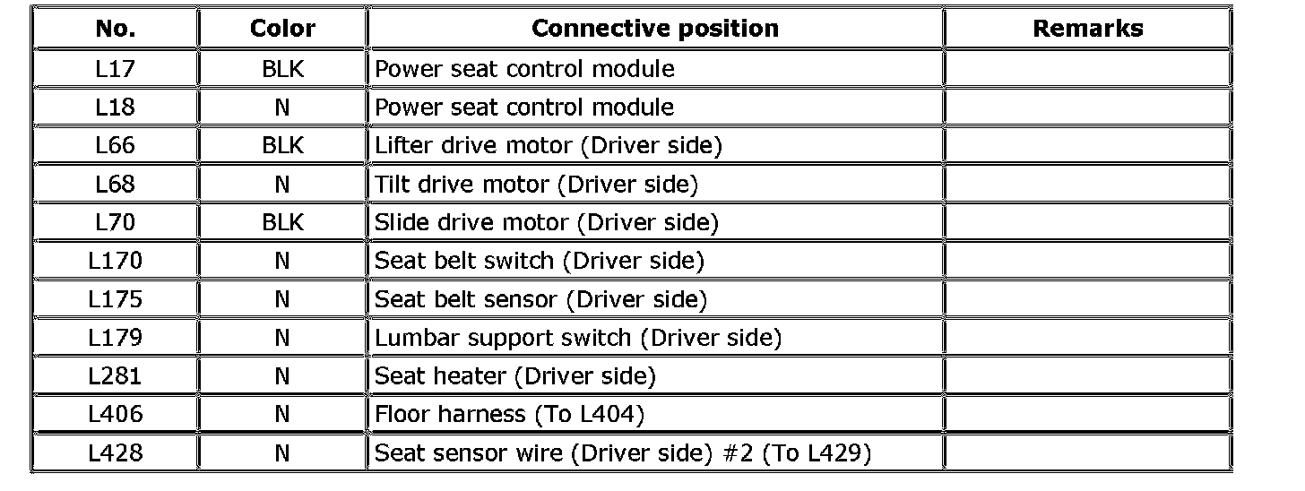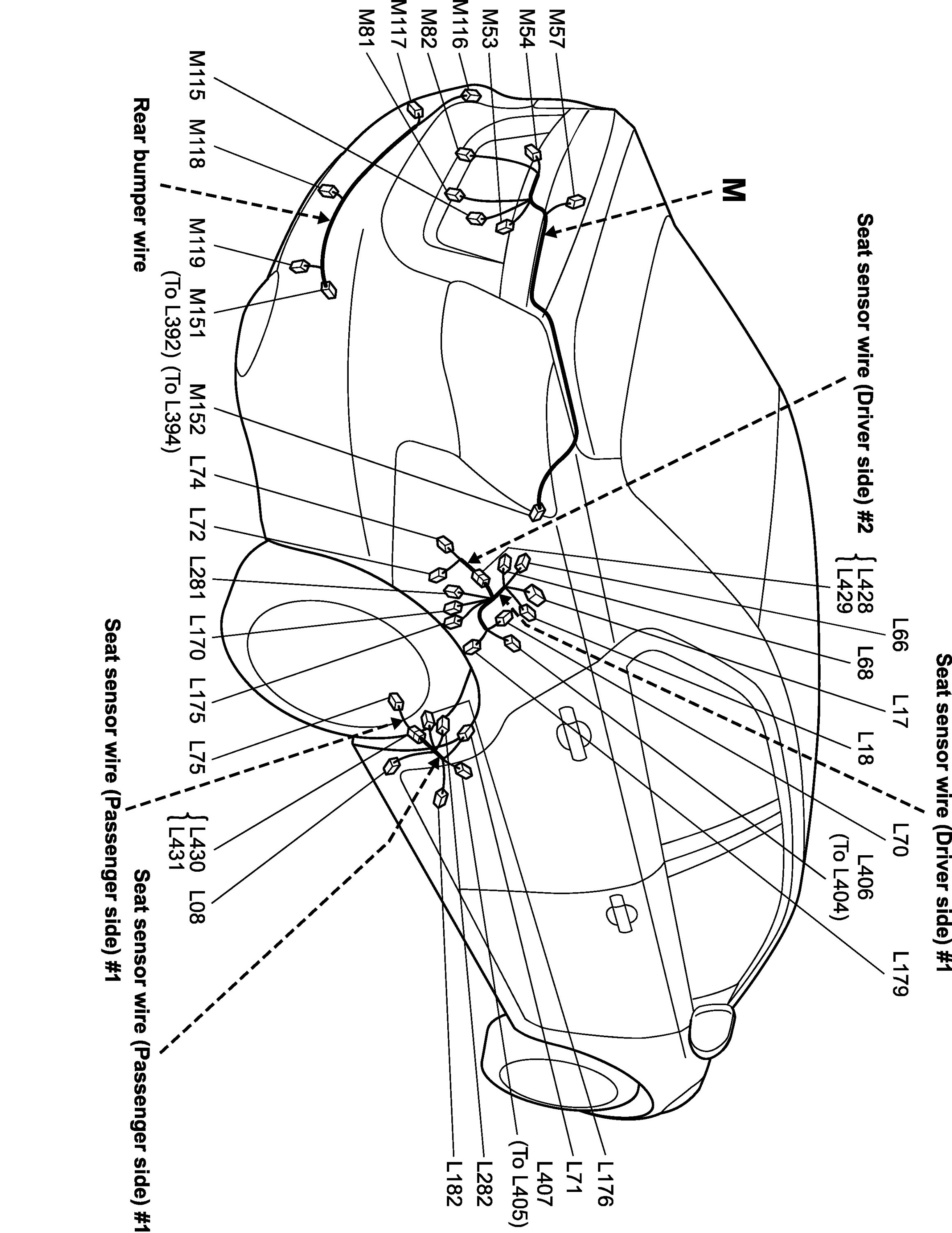L: Seat Sensor Wire / M: Trunk Harness, Rear Bumper Wire