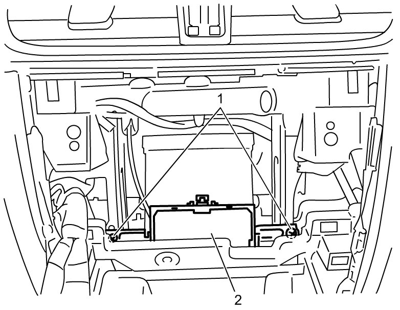 4) Remove screws (1), and then disconnect connector from HVAC control module (2).