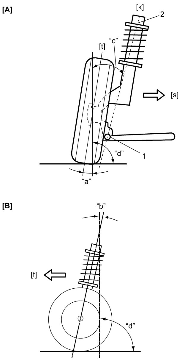 Camber, caster and kingpin inclination angle are not adjustable. If they are out of specification, check vehicle body or replace related part.