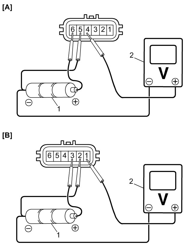 b) Connect voltmeter (2) and batteries to APP sensor as shown in figure.