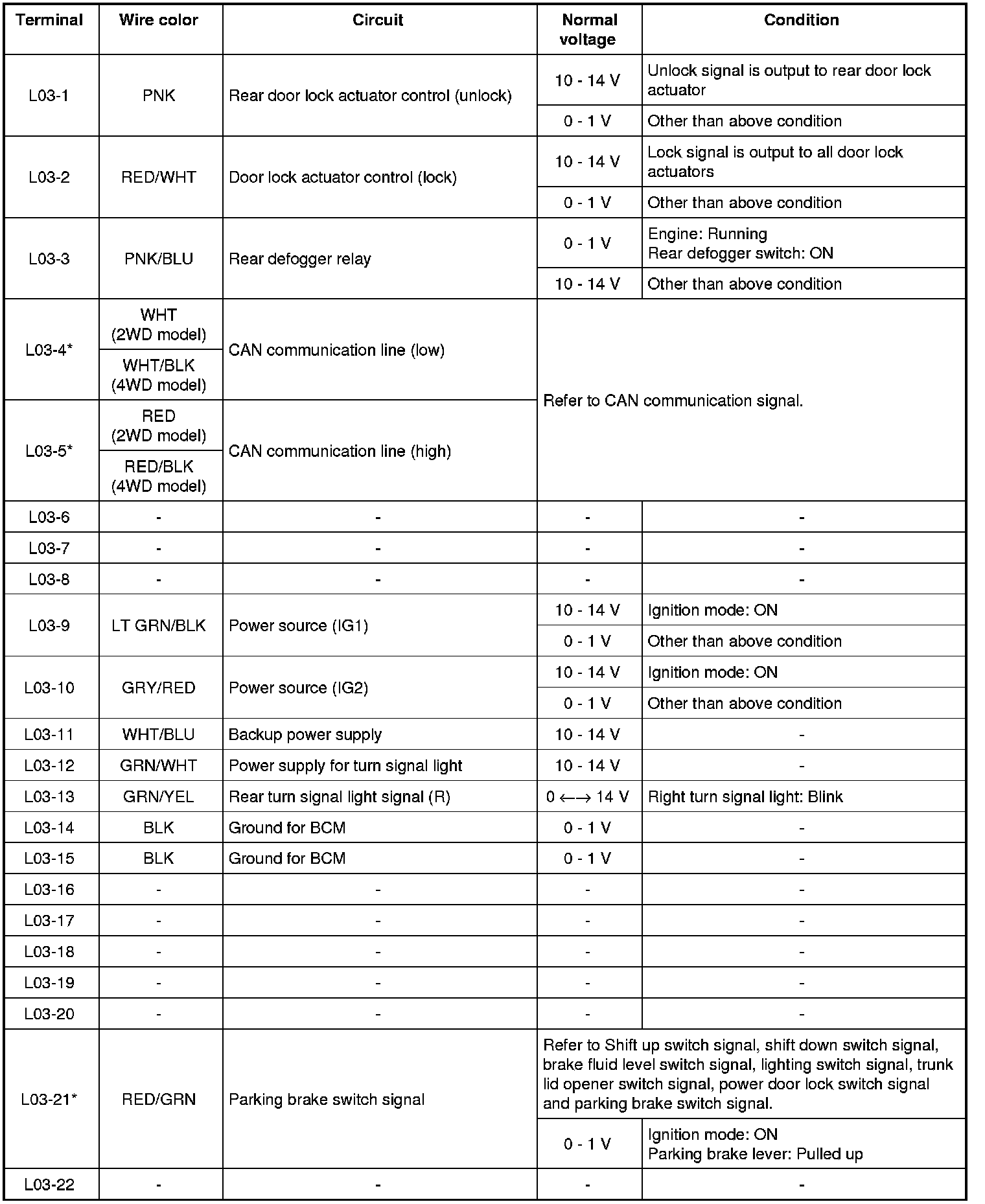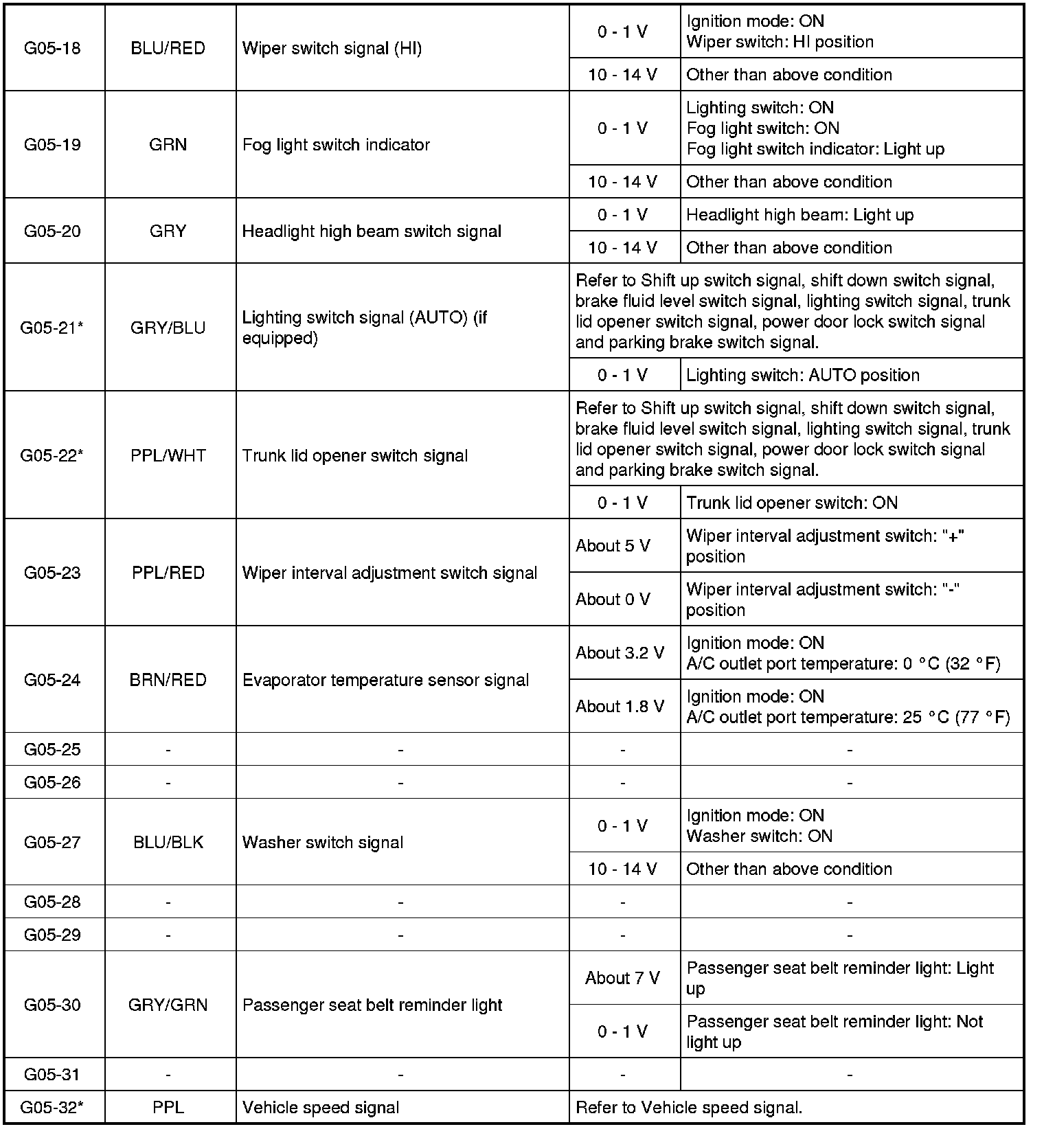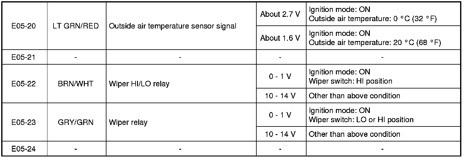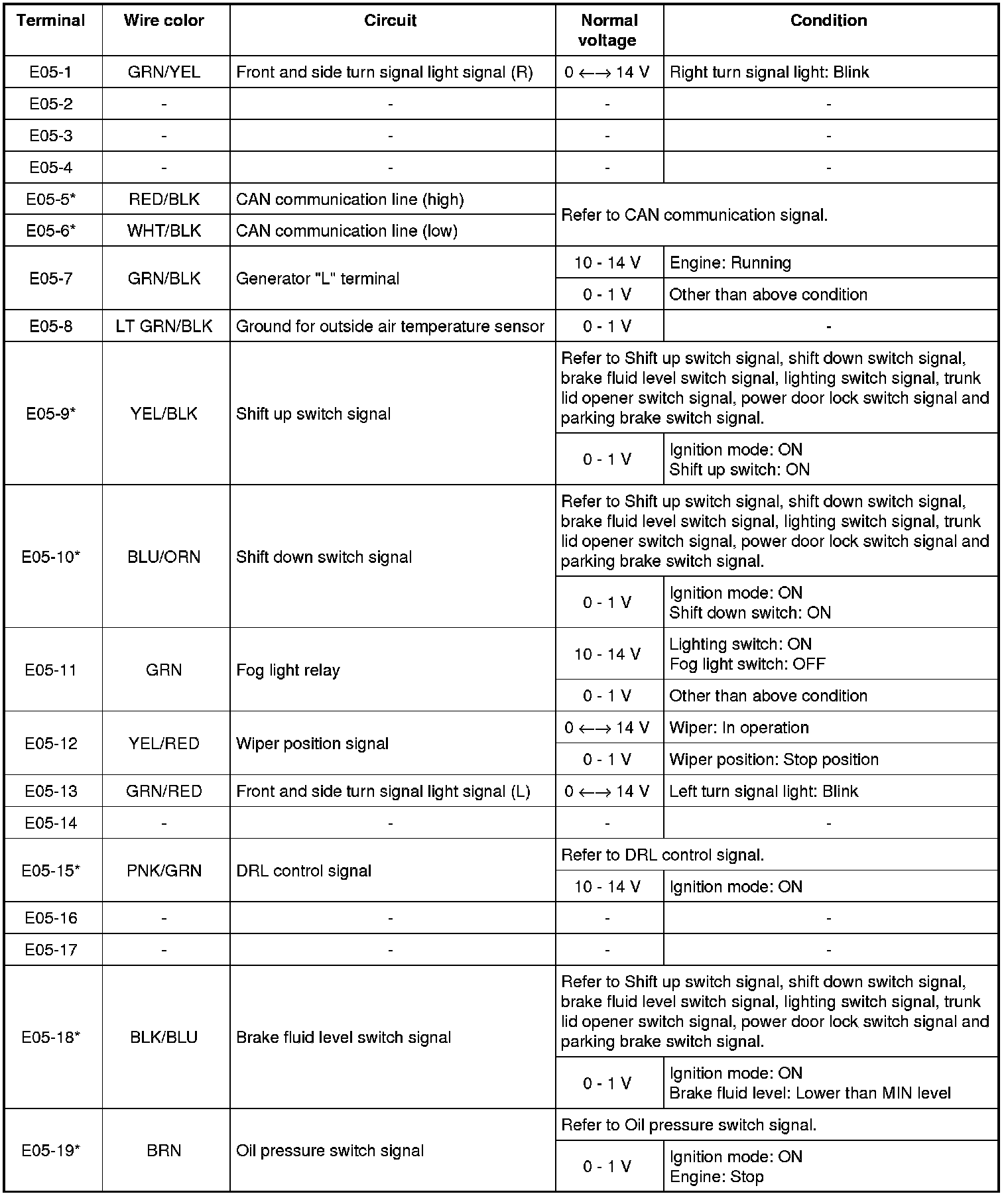 - The voltage of terminal with asterisk (*) cannot be measured by voltmeter because it is pulse signal. Check it with oscilloscope if necessary.