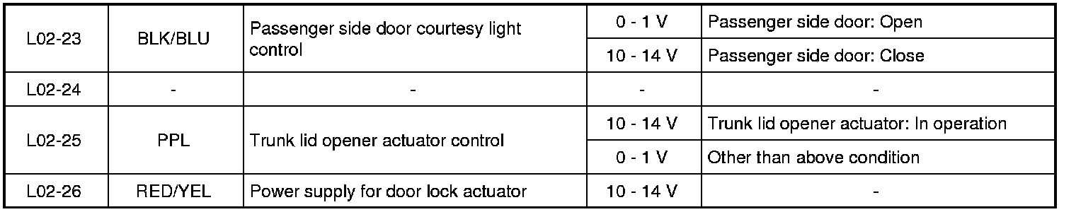Power door lock switch (Lock) signal: