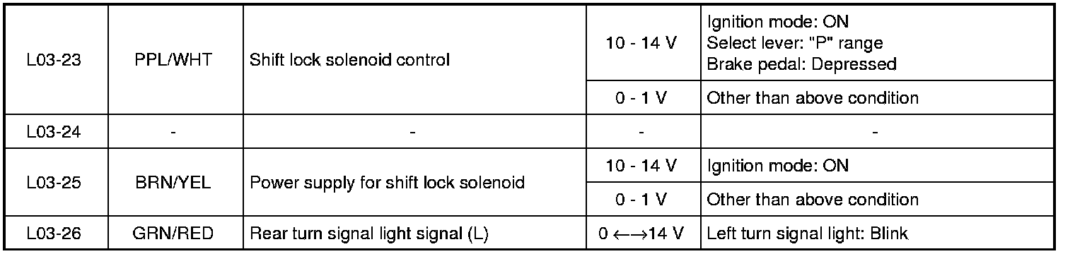 Turn signal switch (L) signal: