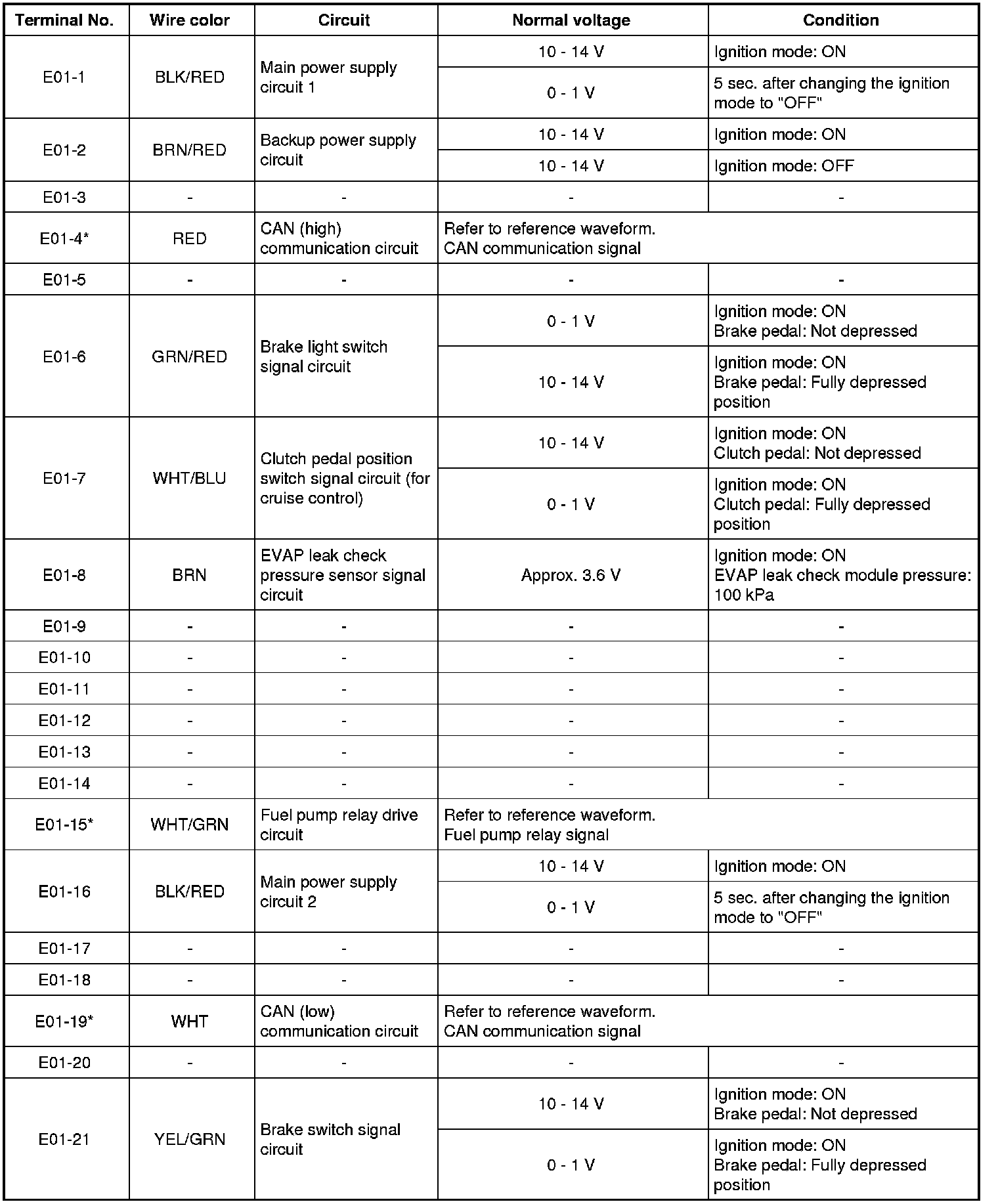 - Voltage with asterisk (*) cannot be measured with voltmeter because it is pulse signal. Use oscilloscope for its check if necessary.