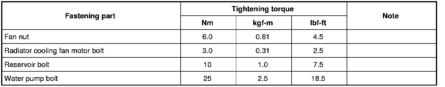 For the tightening torques of fasteners not specified in this section, refer to Fastener Information Fastener Information.
