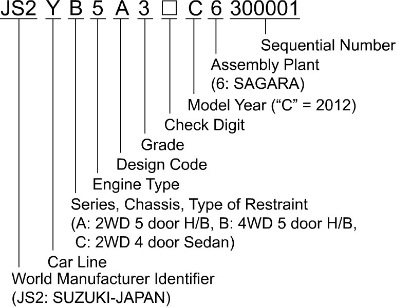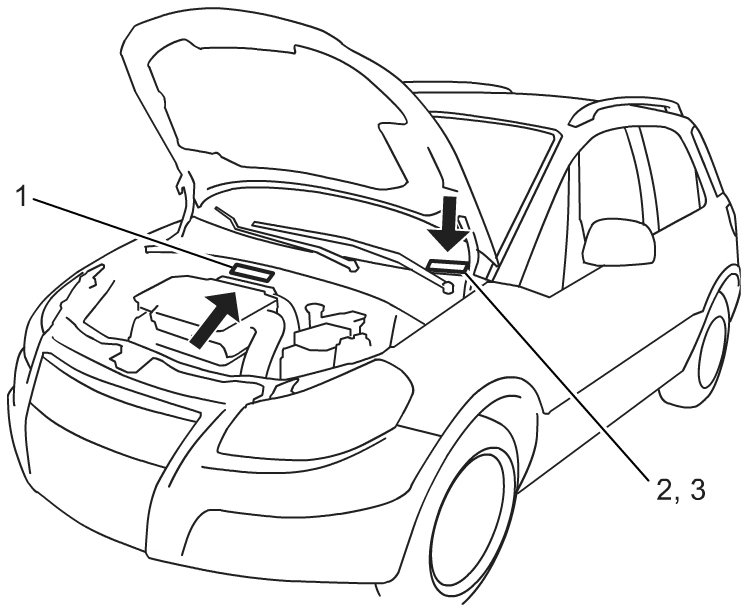 The number is punched on the front dash panel in engine room (1) and it is also attached on the left side of instrument panel (2) or left side of cowl top panel (3) depending on the vehicle specification.