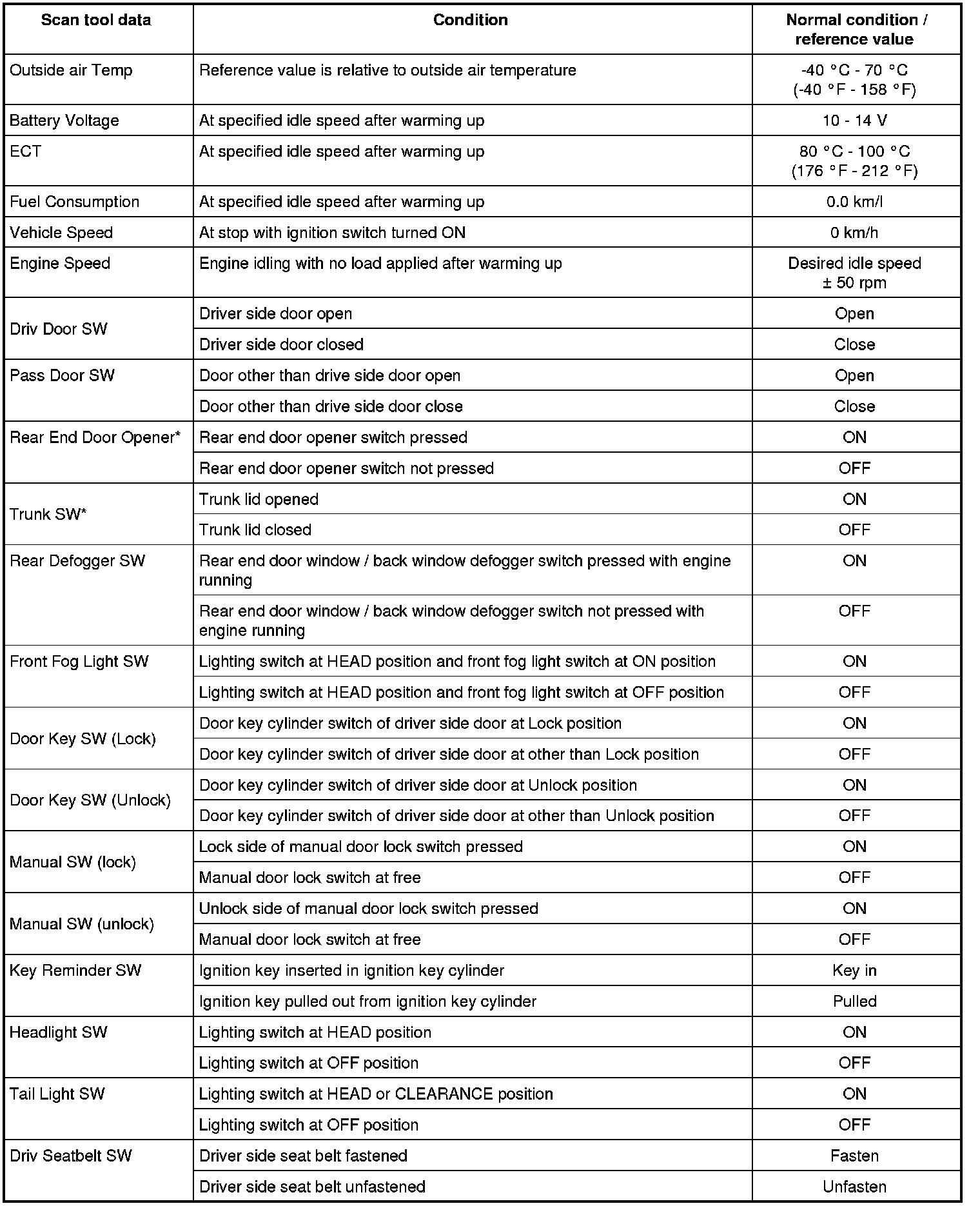Trunk SW (Trunk lid switch) (ON / OFF)