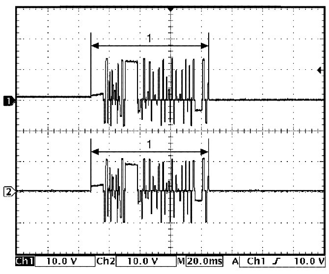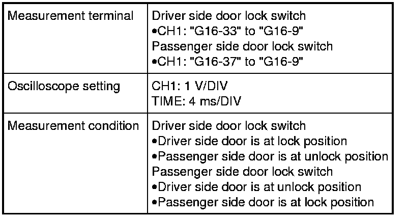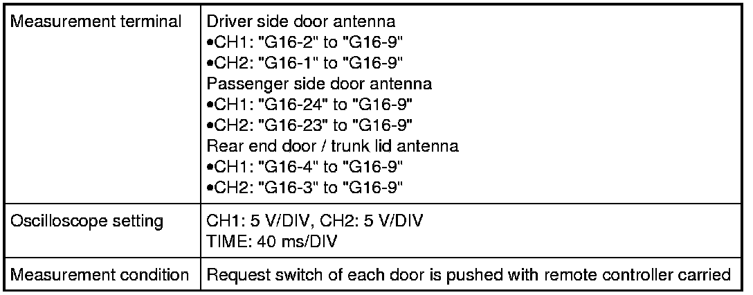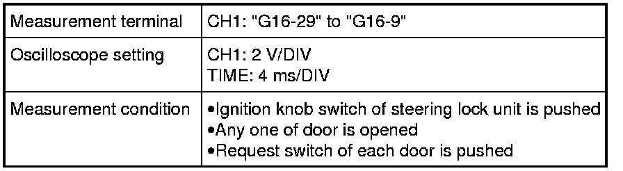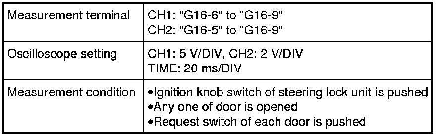 (Signal (1) communicated between keyless start control module and steering lock unit when measurement condition described below applies)
