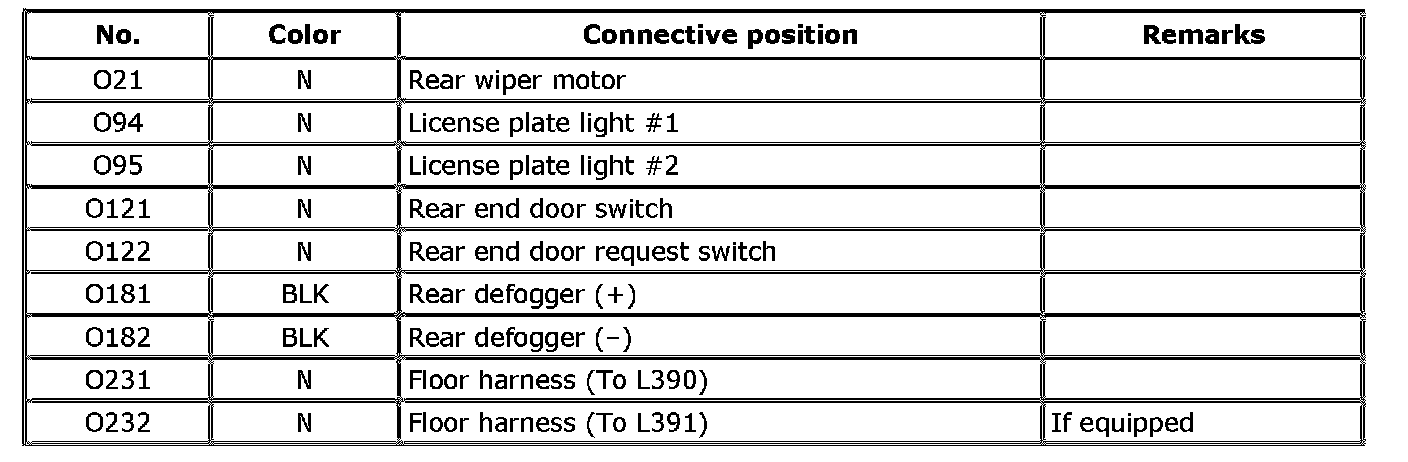 O: Rear End Door Harness