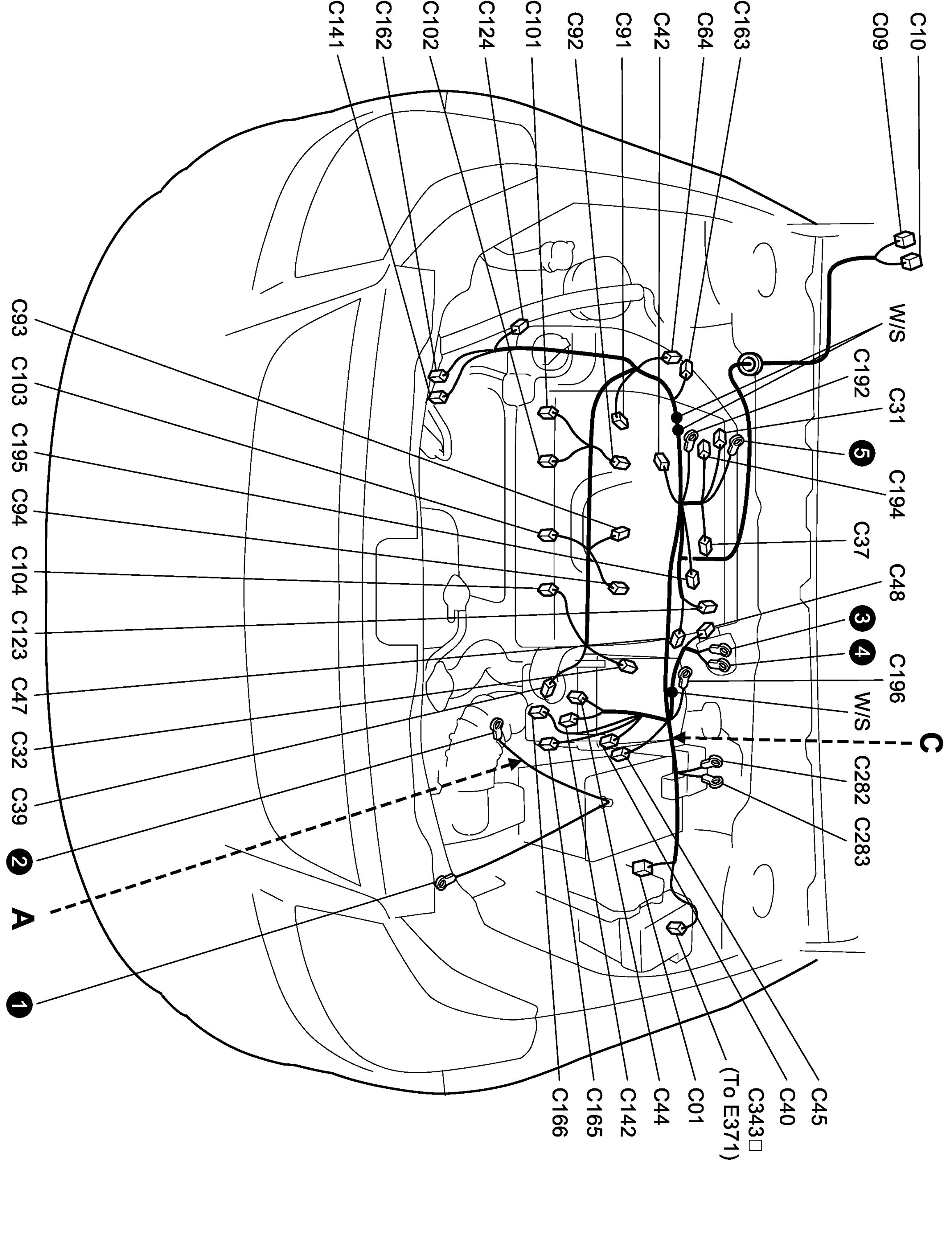 A: Battery Cable / C: Engine Harness