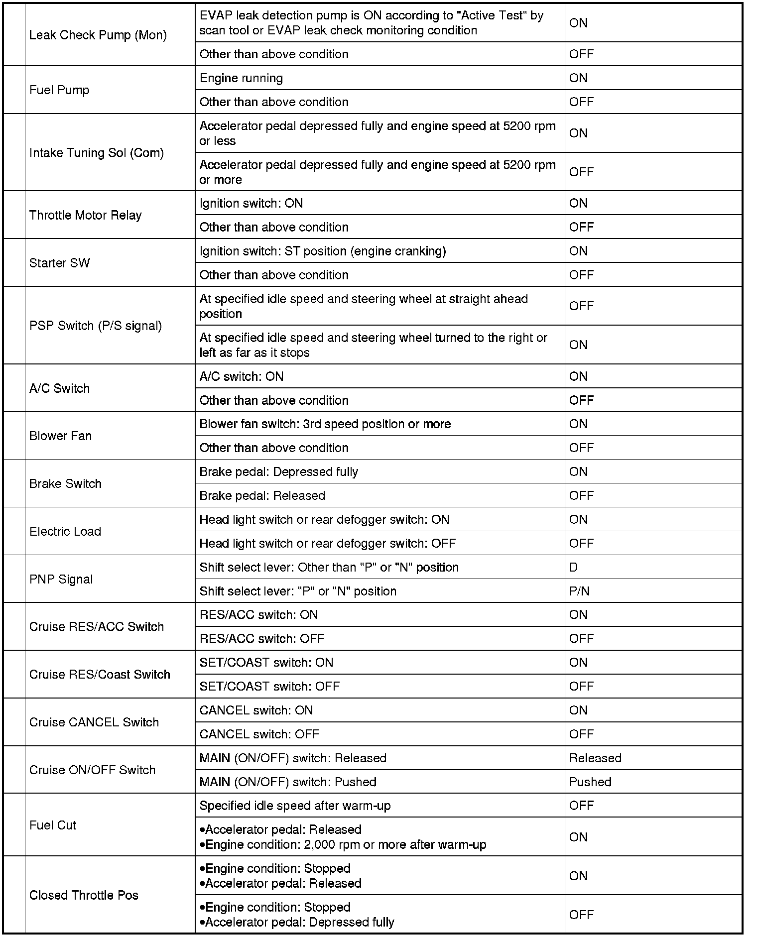 OFF: P/S high pressure switch is OFF (Hydraulic P/S model) or command for idle up is not output from "P/S" control module (EPS model).