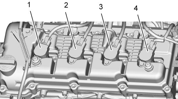 Four cylinders of engine are identified by number; No.1 (1), No.2 (2), No.3 (3) and No.4 (4) counted from crankshaft pulley side to flywheel side.
