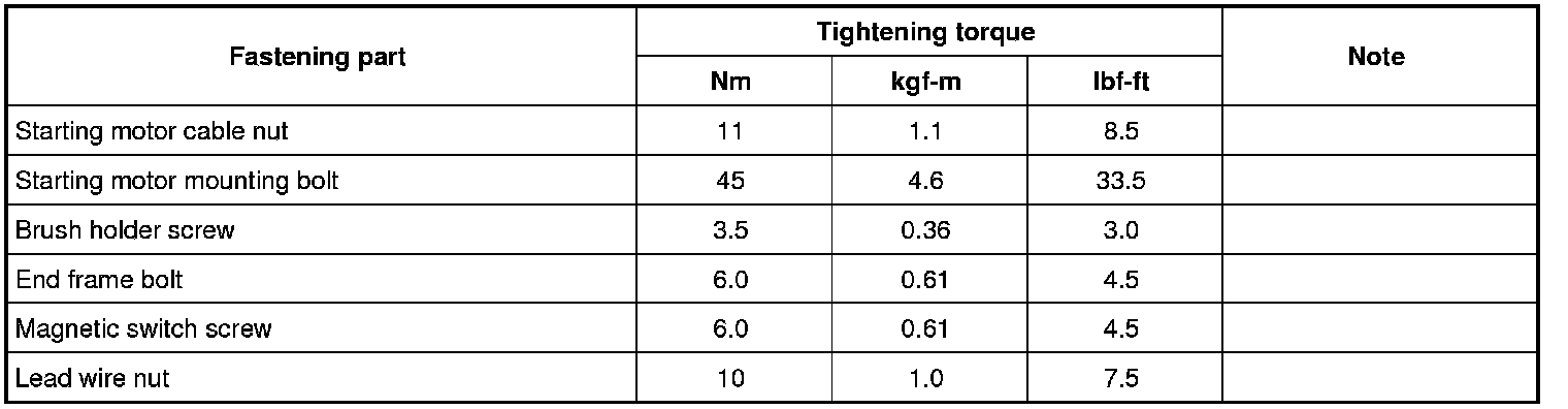 Tightening Torque Specifications
