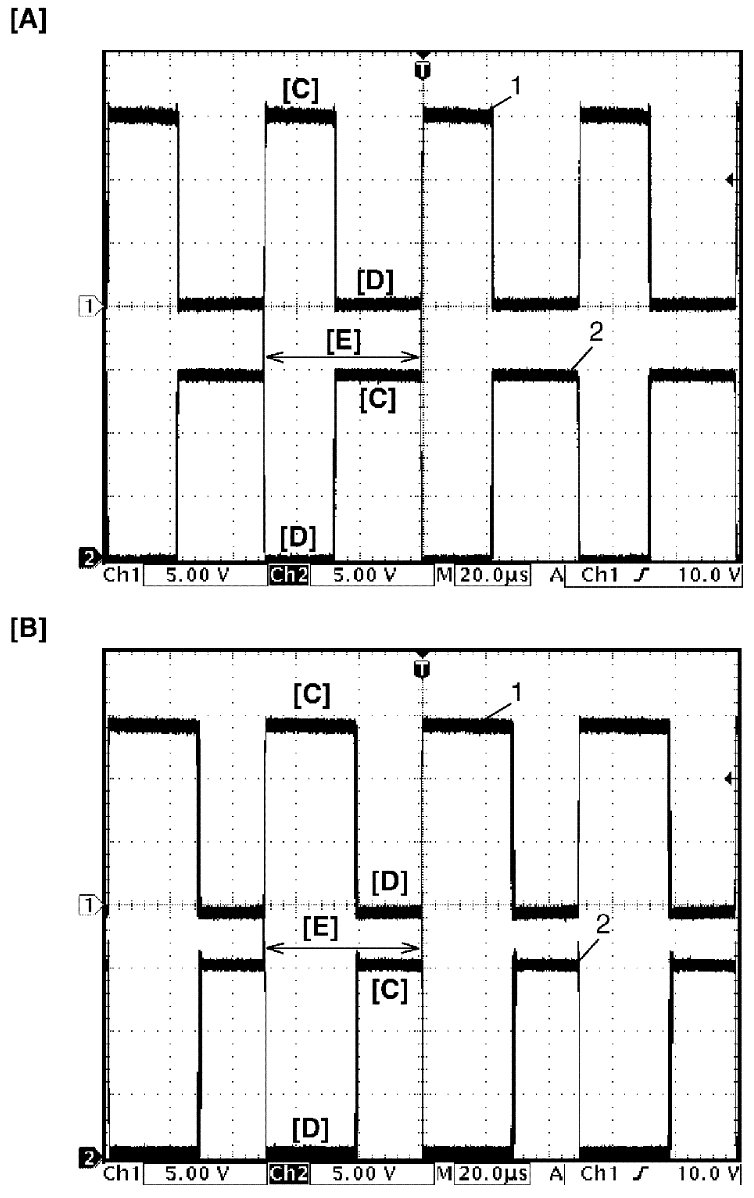 Motor output signal 1 (1), Motor output signal 2 (2), with engine idling