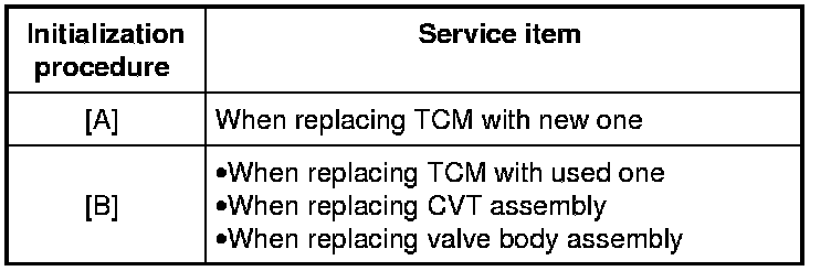 When having replaced TCM and CVT assembly or TCM and valve body assembly at the same time according to the procedure other than the below, perform initialization procedure [B].