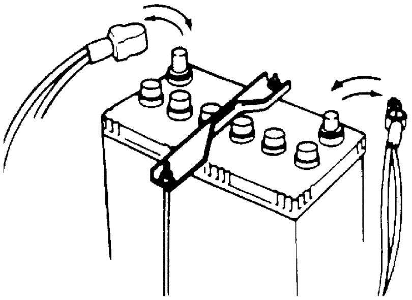 - When removing the battery, be sure to disconnect the negative cable first and then the positive cable. When reconnecting the battery, connect the positive cable first and then the negative cable, and replace the terminal cover.