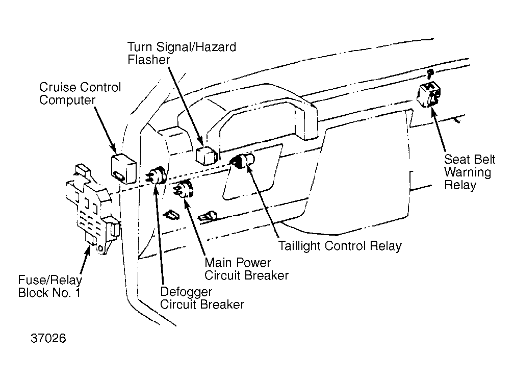 | Defogger Circuit Breaker | On fuse/relay panel No. 2. See Figure. |