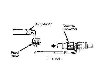 Air suction system uses exhaust gas pulses to draw air into the exhaust manifold or catalytic converter to help complete oxidation of emissions. See Figure- Figure. The air suction system on California Pickup (Carbureted) models is computer controlled and therefore is closely tied with the carburetor/fuel feedback control system. See Figure- Figure . See appropriate CEC article in the COMPUTERIZED ENGINE CONTROLS section. for information and testing of vehicle speed sensor, temperature switches, and oxygen sensor.