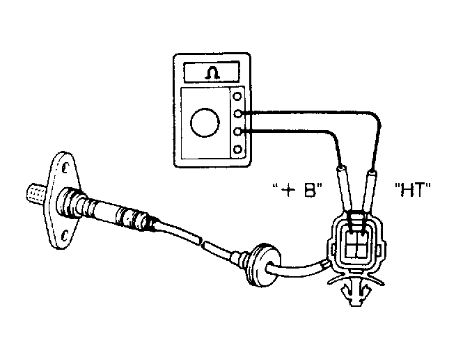 Using an ohmmeter, measure resistance between terminals "+B" and "HT" with oxygen sensor at 68°F (20°C). See Fig 1. Resistance should be between 5.1-6.3 ohms at 68° F (20°C). If resistance is not as specified, replace oxygen sensor.