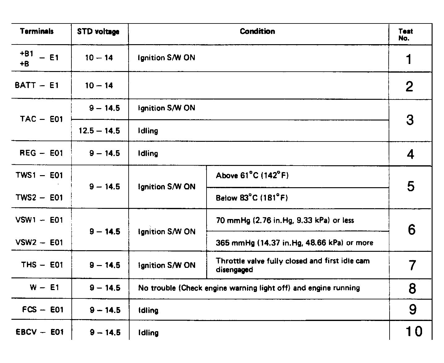 - If codes are present, use chart for code identification and proceed to appropriate test number under NO VOLTAGE TESTING . See Fig 1. If no codes are present and a problem exists, perform ECU terminal voltage test and proceed to appropriate test number under NO VOLTAGE TESTING. See Figure.