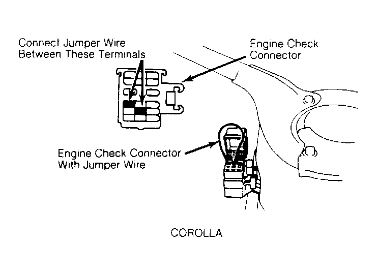 2. To enter diagnostic mode, turn ignition on. DO NOT  start engine. Install jumper wire between terminals of engine check connector. See Fig 1 and Fig 2 .