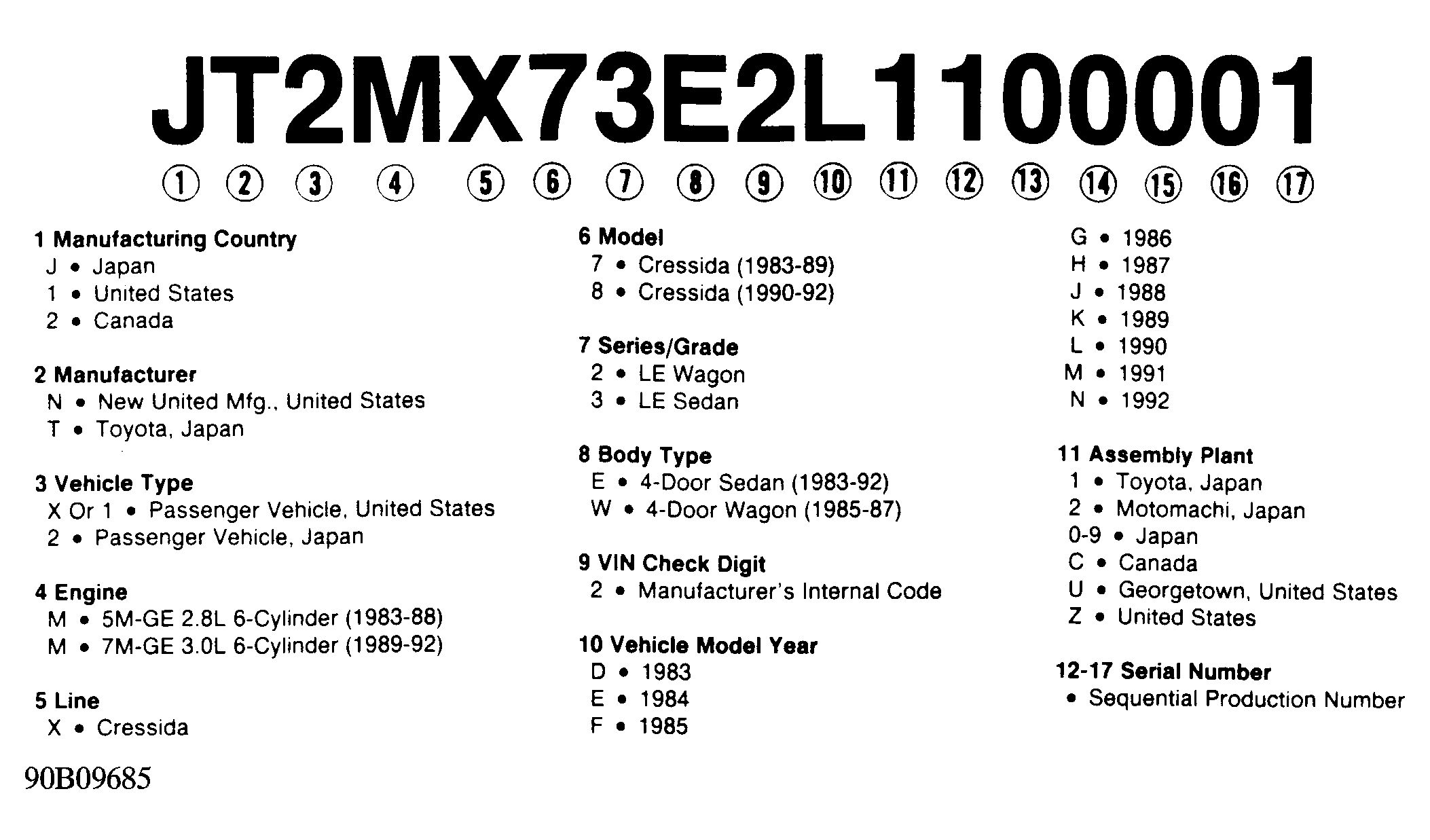 Home >> Toyota >> 1988 >> Cressida >> Repair and Diagnosis >> Engine Performance >> Application >> Engine/VIN Id >> Model Identification >> VIN Code Id Explanation