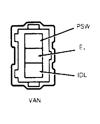 - Connect a tachometer to engine (to monitor needle fluctuations). Start engine and warm to operating temperature. Disconnect throttle position sensor connector from throttle position sensor. Short terminals IDL and E1 (or E2) on wire side of connector. See Fig 1.