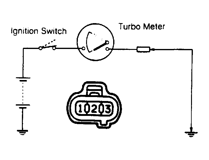 - Turn ignition on with engine off. Turbo meter needle should move to upper position. Ground terminal No. 2 on the wiring harness side. See Fig 1. Meter needle should move to lower position. If meter does not respond as described, go to step 3).
