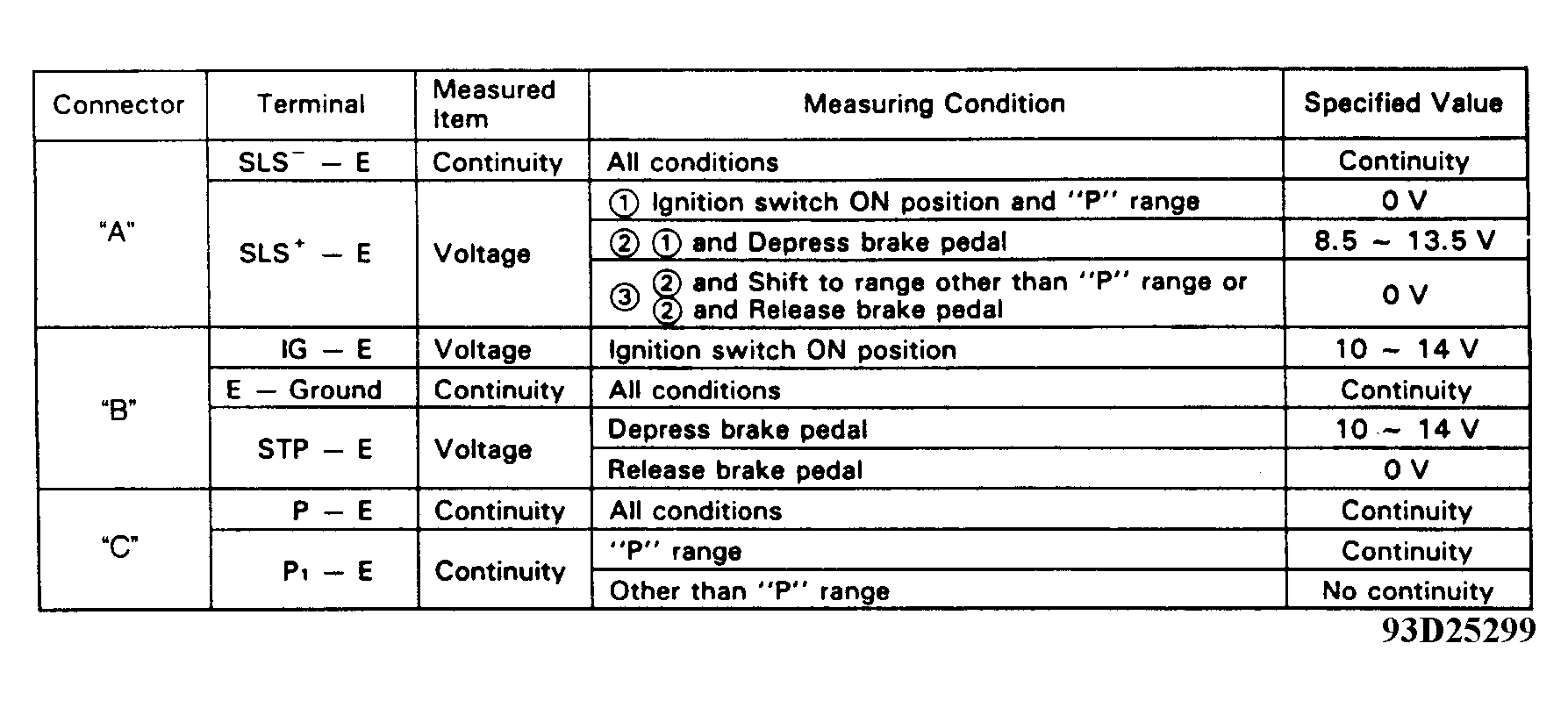 to ignition switch and brakelight switch. Connector "C" goes to shift lock