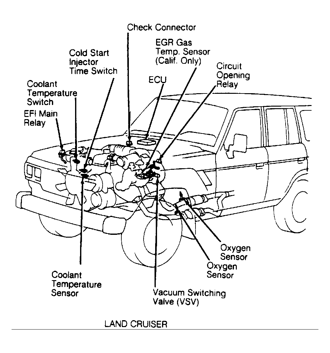 - Unplug cold start injector time switch connector. For cold start injector time switch location, See Figure.