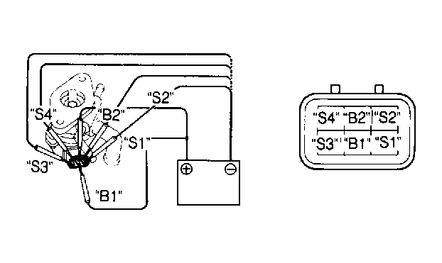 - Apply battery voltage to terminals "B1" and "B2". Repeatedly ground terminals "S4", "S", "S2", "S1" and "S4" in sequence. Valve should move toward open position. Replace valve if it failed to operate properly.