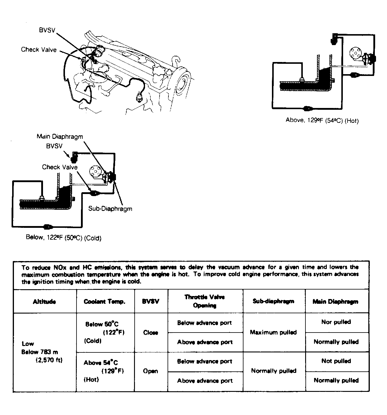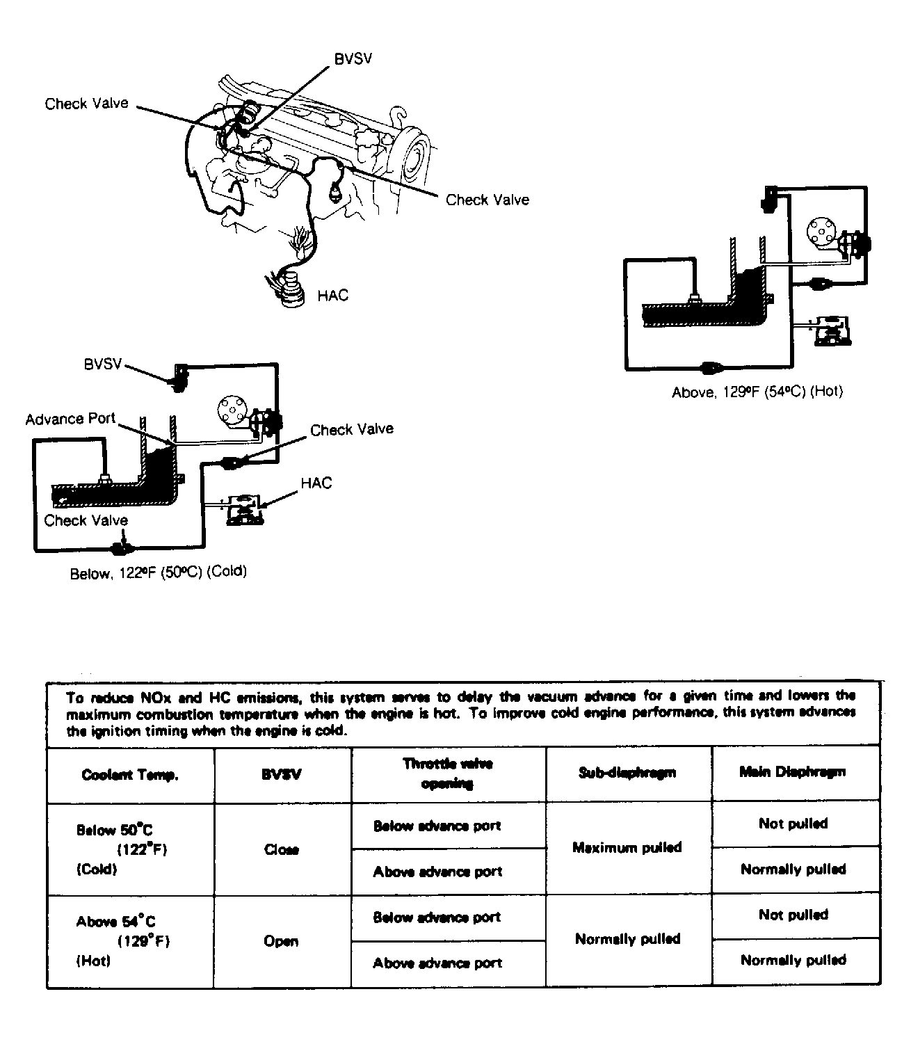 - Recheck ignition timing. Timing should be 5 degrees BTDC at 950 RPM. Reconnect vacuum hoses. Remove timing light. If timing is not within specification, individual components must be checked. Test distributor vacuum advance, check valve and Bi-Metallic Vacuum Switching Valve (BVSV).
