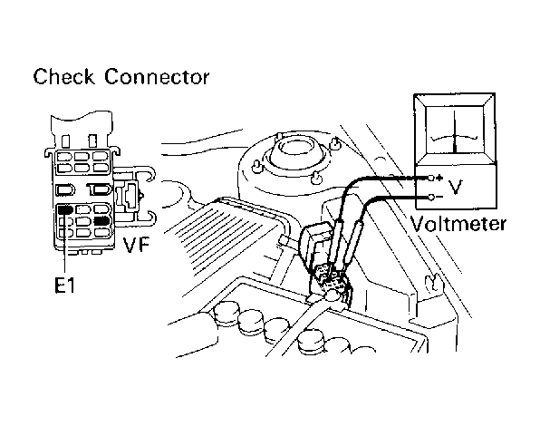 4. Connect jumper wire to engine check connector terminals FP and +B to pressurize fuel system. For engine check connector locations, see Figure. Connector terminals are marked on inside of check connector cover.