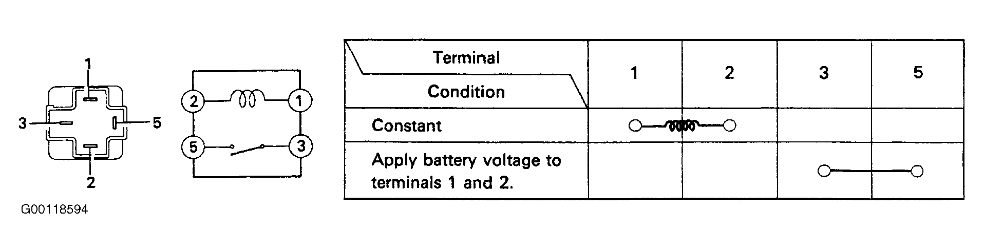 Inspect power main relay continuity between specified terminals. See Fig 1. If continuity is not as specified, replace relay.