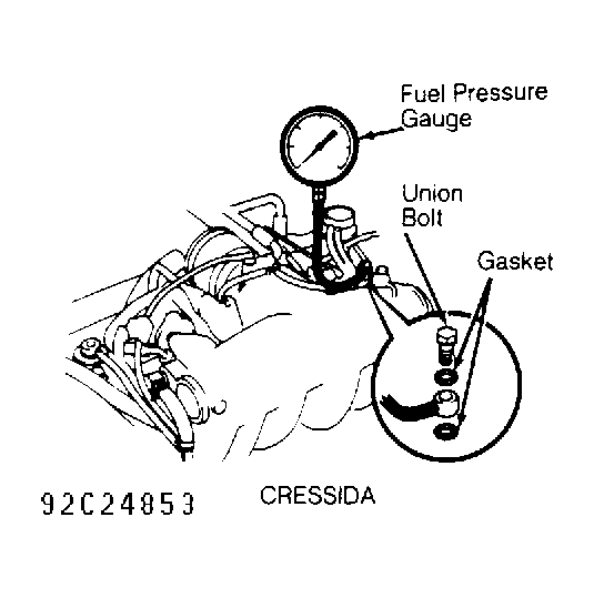 Fig 1: Installing Fuel Pressure Gauge (Cressida)