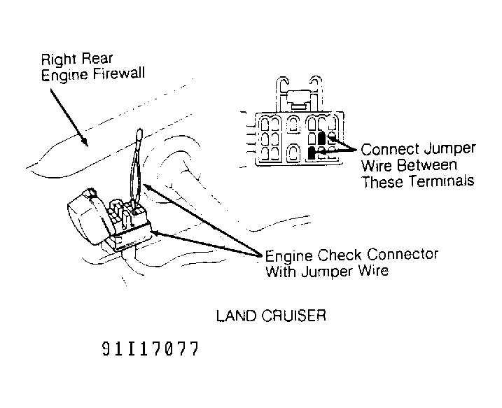 - Turn ignition on with engine off. Install jumper wire between terminals TE1 (or T) and E1 in engine check connector. See Fig 1.