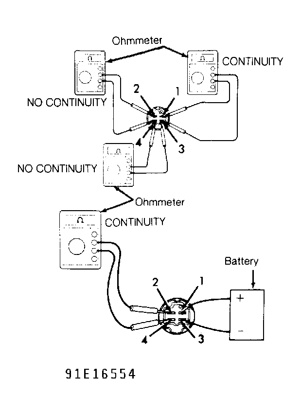 - Check EFI main relay operation by applying battery voltage and checking continuity between specified terminals. See Fig 1. Replace EFI main relay if defective.