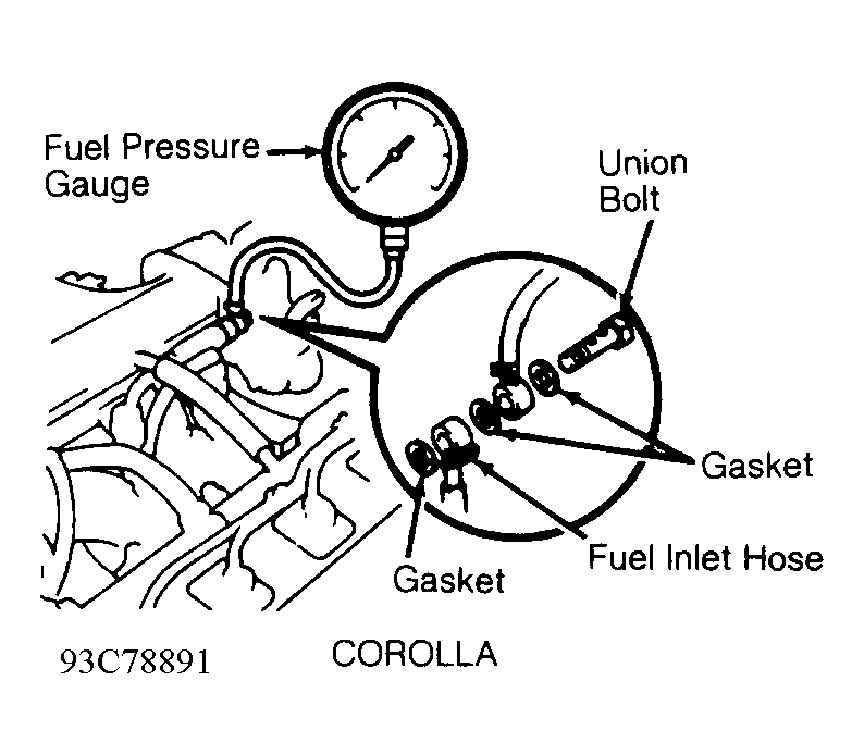 - Remove union bolt and gaskets. Install Fuel Pressure Gauge (SST 09268-45012) using NEW gaskets. See Fig 1. Tighten union bolt. Reconnect negative battery cable.