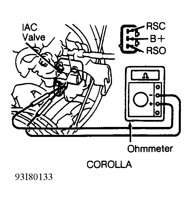 - Replace IAC valve if resistance is not within specification. See IAC VALVE RESISTANCE SPECIFICATIONS table.NOTE: Information is not available from manufacturer for checking IAC valve operation for Previa.