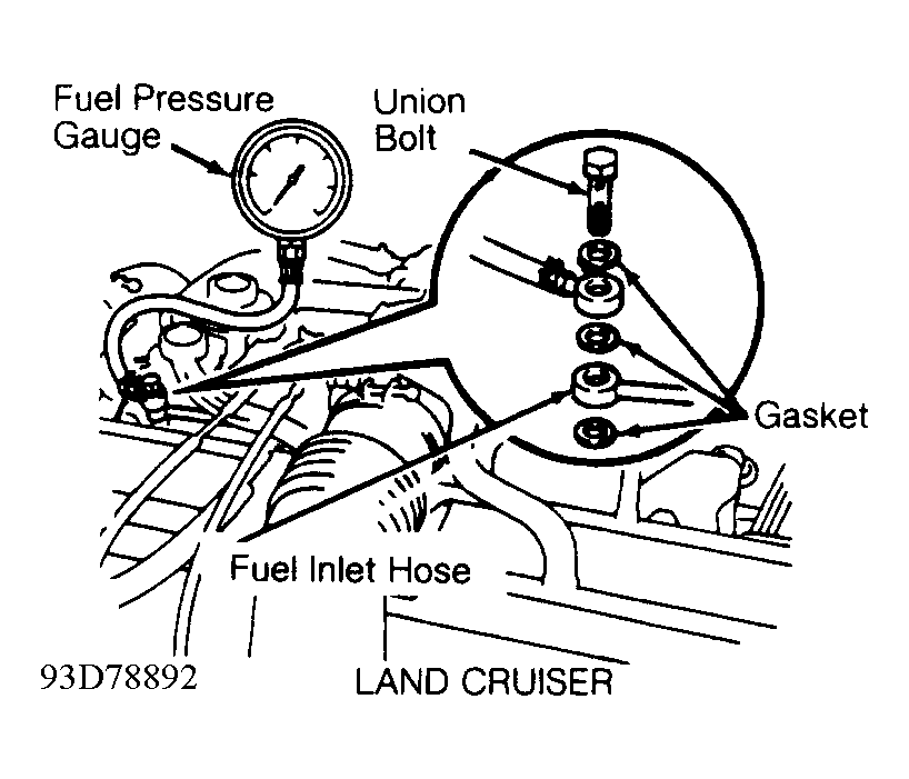 - Remove union bolt and gaskets. Install Fuel Pressure Gauge (SST 09268-45012) using NEW gaskets. See Fig 1. Tighten union bolt. Reconnect negative battery cable.