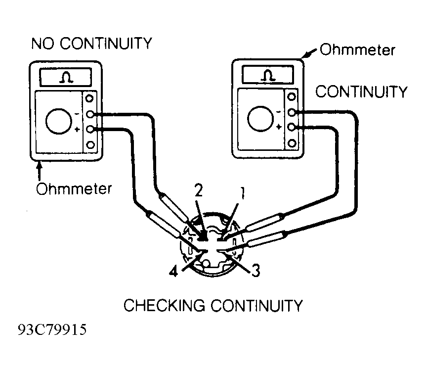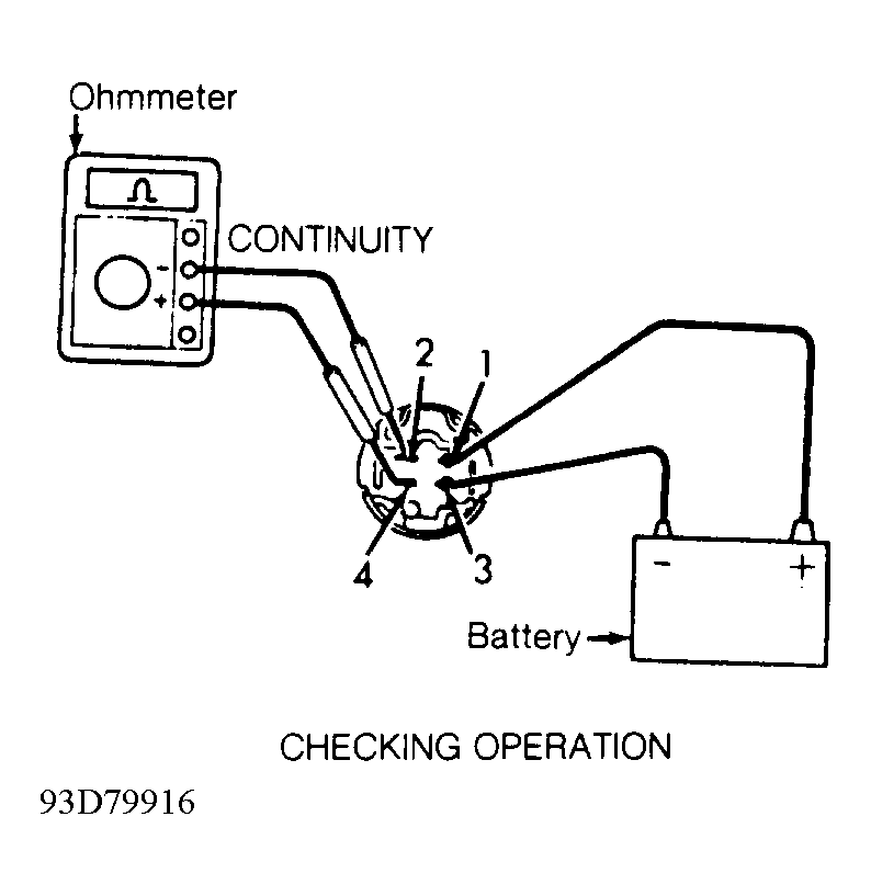 - Check EFI main relay operation by applying battery voltage and ground and checking continuity between specified terminals. See Fig 1 and Fig 2. Replace EFI main relay if defective.