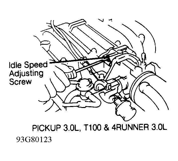 3. Return idle speed adjusting screw to original position. Warm engine to normal operating temperature. Repeat step 2). Engine speed should not change or should drop slightly.