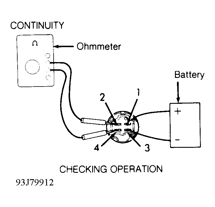 - Check EFI main relay operation by applying battery voltage and ground and checking continuity between specified terminals. See Fig 1 and Fig 2. Replace EFI main relay if defective.